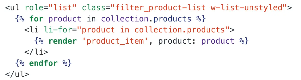 To keep your Shopify theme code clean and modular, you can use the `li-snippet` attribute. Think of it like components in Webflow: reusable building blocks that can be defined once and placed anywhere in your theme.